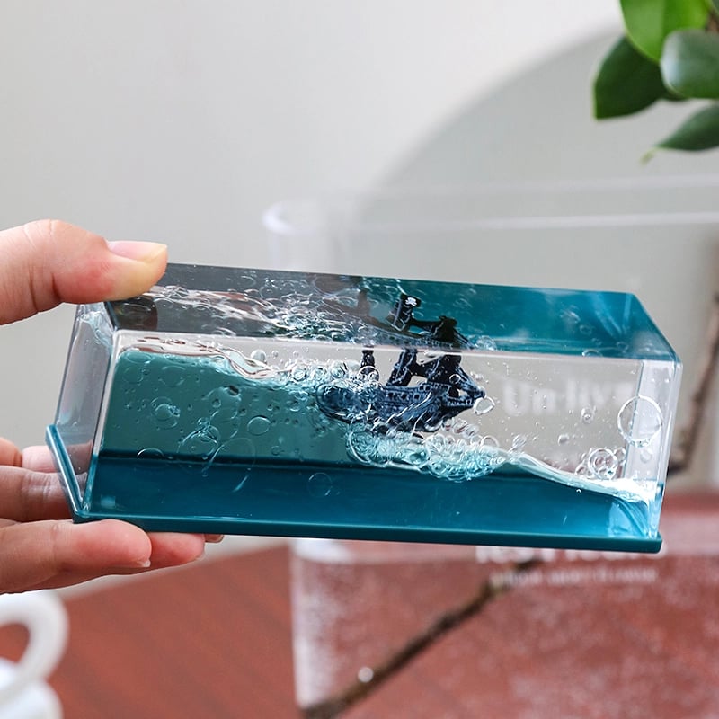 The outer layer is made of high-quality acrylic, It has crystal-like transparency, soft light, clear vision. The cruise ship and iceberg are made of resin, and the built-in seawater is pure water and vegetable oil to ensure it never sinks.