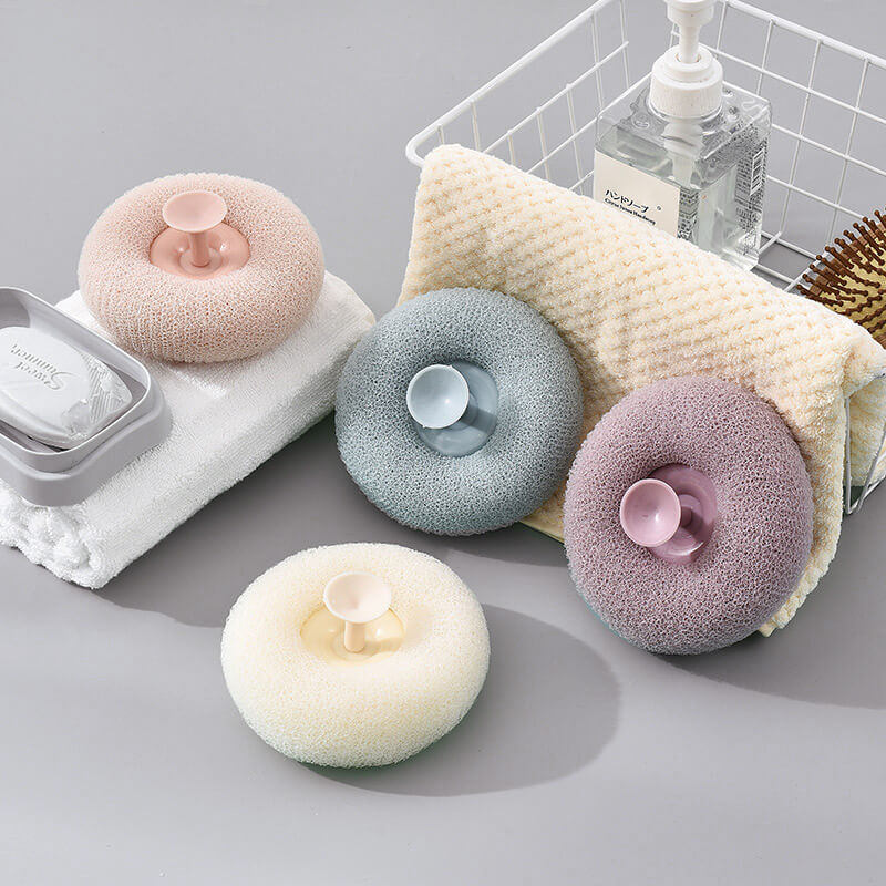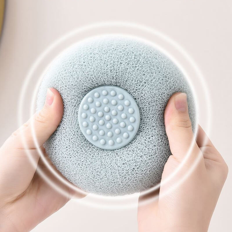 EASY GRAP DESIGN: silicone grap designed bath sponge will never let your baby put them down while enjoy washing body; The silicone handle is easy to grasp and can also be used as a suction cup to hang or invert the shower ball, making it easy to air dry