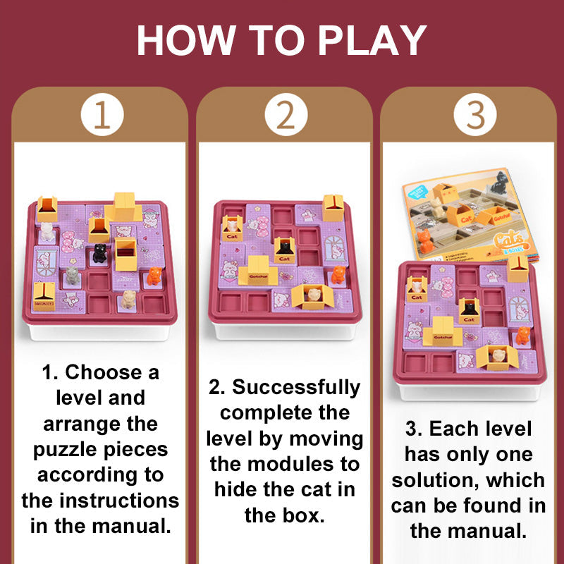EDUCATIONAL GAMEPLAY: Designed to enhance critical thinking and problem-solving skills as players help all 5 cats hide in their boxes to complete each level.