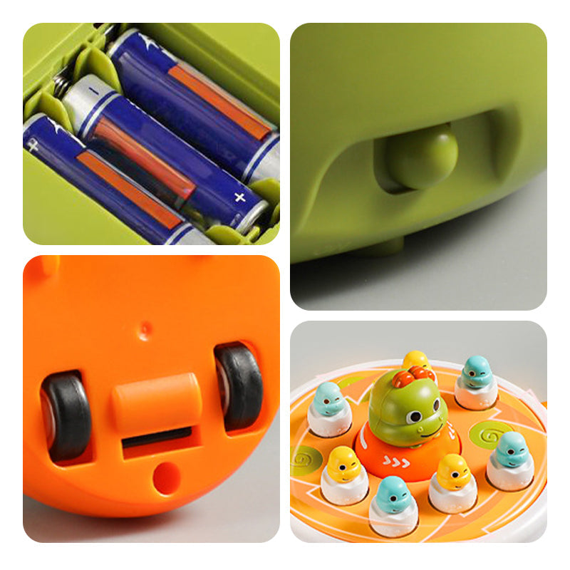 INTERACTIVE FUN WITH SPINNING MUSIC: The 360° rotating board spins while playing cheerful music, making every round dynamic and exciting as the dinosaur eggs bounce randomly, adding an element of surprise.