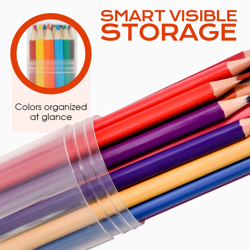 TRANSPARENT STORAGE CASE: Organized in a sleek round case with a clear lid, your pencils stay visible and tidy. Quickly find the color you need and keep your workspace clutter-free.