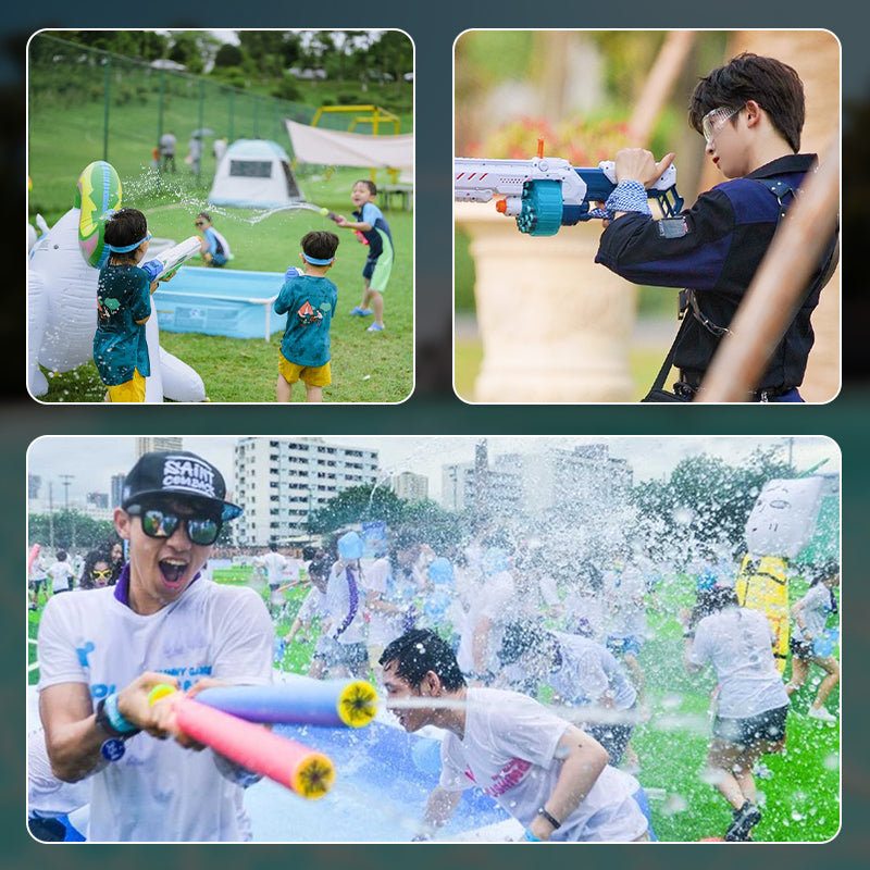 UP TO 8M RANGE - Experience powerful water propulsion with a range of up to 8 meters, perfect for large play areas. The electric motor provides a continuous high-pressure water jet, ideal for water fights or outdoor play.