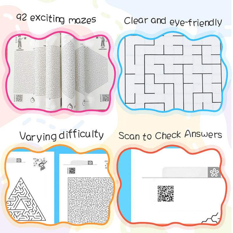 SCAN TO CHECK ANSWERS: Simply scan the QR code with your phone to view the answers, making it easy and convenient to check progress and solve tricky mazes.