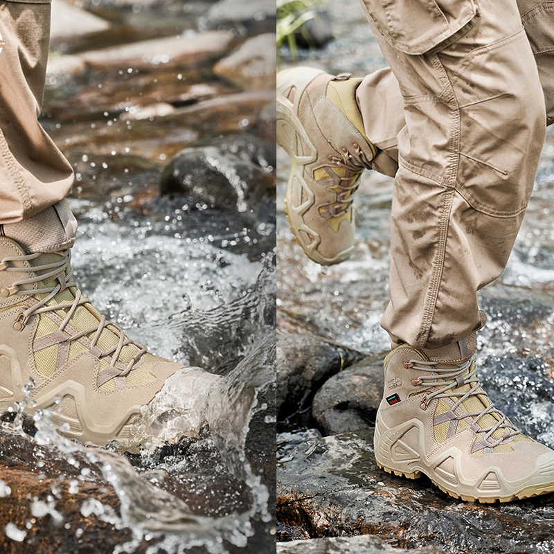 ALL-GROUND PERFORMANCE: Waterproof upper keeps feet dry in rain, puddles, and wet conditions. Deep-tread rubber outsole delivers strong grip on slippery asphalt and wet surfaces. Ideal for hiking, climbing, and urban commuting—confident traction across diverse ground, all-weather reliability.