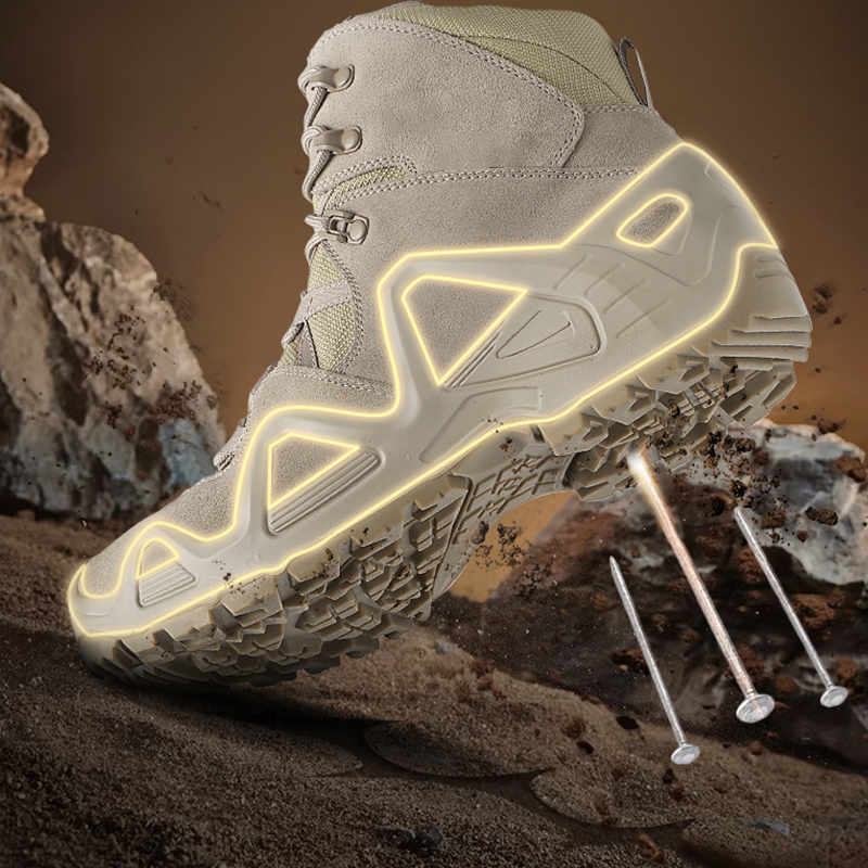 MILITARY-GRADE PUNCTURE PROTECTION: Features a reinforced puncture-resistant layer built to military standards, shielding feet from nails, glass, and sharp debris. Offers reliable protection on construction sites, rocky trails, and urban ground.