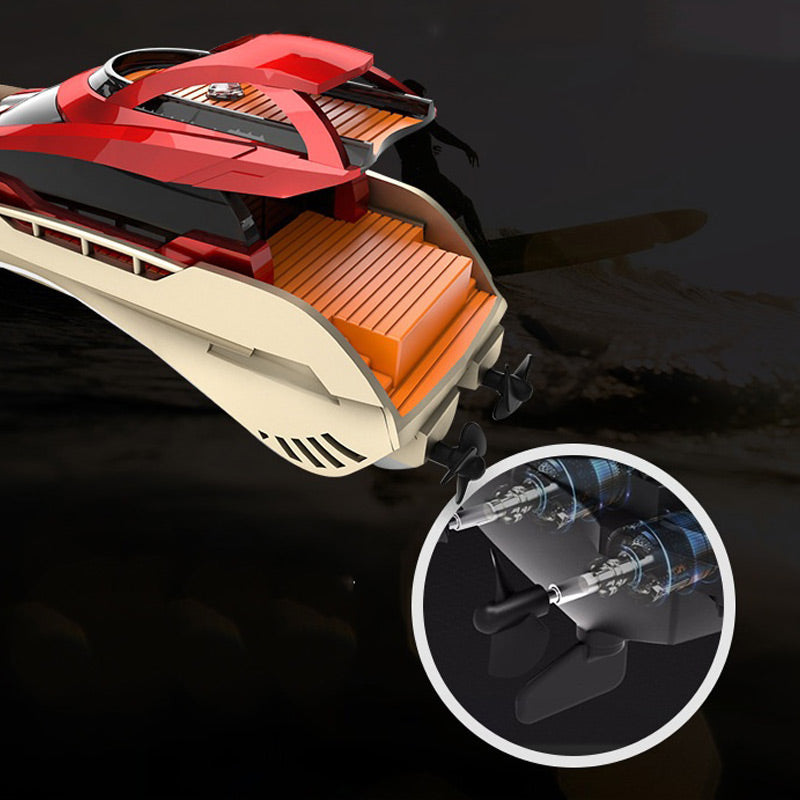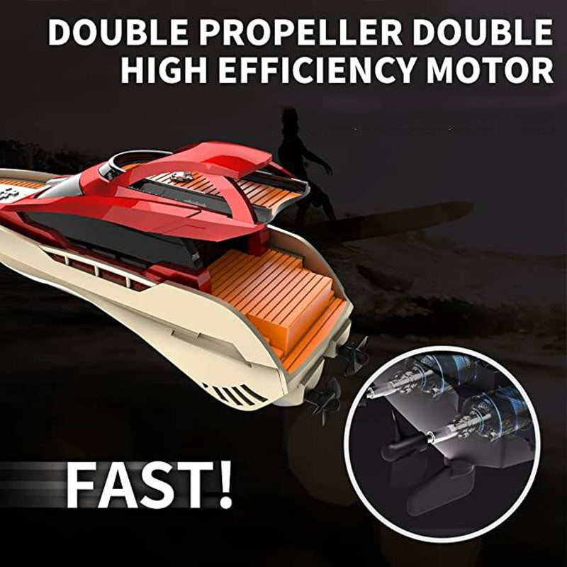 DOUBLE PROPELLER DESIGN FOR ENHANCED STABILITY: Featuring a dual propeller system, this boat offers improved balance and precise control, ensuring smooth and stable navigation even at high speeds.
