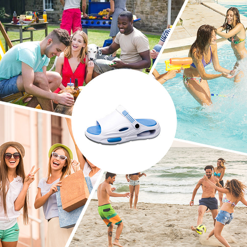 BREATHABLE AND QUICK-DRYING FOR FRESH, COMFORTABLE FEET – The insole is made from breathable EVA material that promotes air circulation and wicks away moisture faster than traditional materials. This helps prevent odor buildup, making the sandals perfect for beach vacations, locker room use, or humid climates.