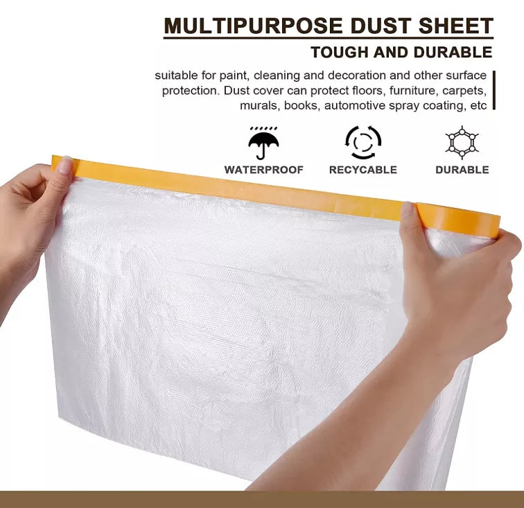 - 【With Positioning Masking Tape】Adhesive masking tape on the top of our plastic sheet(the yellow part) helps you locate the plastic cover.No worry about the plastic tarp falling off or moving.Suitable for three-dimensional furniture such as wardrobe,fridge.