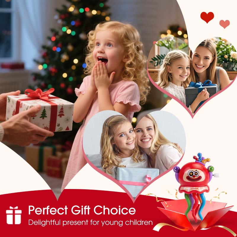 STRESS RELIEF PLAY - Provides a simple yet effective way for both children and adults to unwind and alleviate stress. The repetitive winding and watching the octopus spin offers a calming sensory experience, promoting relaxation and focus.